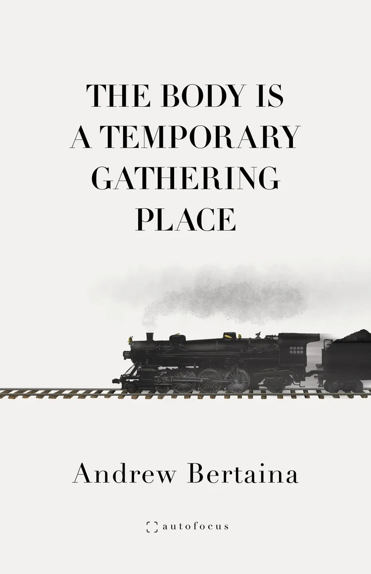 With bookmark in place, I was tentative about my wrist adjustments while reading Andrew Bertaina’s THE BODY IS A TEMPORARY GATHERING PLACE, knowing I was nearly a year late in appreciating the unbroken spine and fresh indention of the author’s note to myself. By the time I started reading “BODY” this January, the offer to read and wrangle some semblance of a review was some eleven months in the past. As Bertaina writes in his fifth essay, “Time moves on like the obscenity that it is.” (37, “Time Passes”) I felt like an asshole watching it go, but not only that, knew as it gathered speed against me that I was someone whose own pathological negligence had, once again, tripped her up. The feeling of deliverable purpose had expired. I’d failed in my delivery of a promised product and in that failure, tripped ungallantly out of the online indie literature community via X debacles, my account so aflame with malevolent feeling (some, rightfully felt) that I’ve exiled myself to a recalcitrant blog and limited social media access.